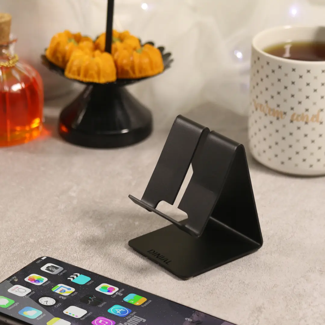 نگهدارنده موبایل و تبلت دینیال با توجه به طراحی ایتالیایی خود ، یک محصول دکوراتیو ، خلاقانه ، جذاب و بسیار کاربردی می باشد. نگهدارنده موبایل و تبلت دینیال ، کار را برای شما راحت میکند به صورتی که شما میتوانید در خانه ، محل کار و غیره حس خوب و راحت استفاده از این محصول را تجربه کنید. این محصول میتواند هر نوع و مدل موبایل و تبلت را بصورت عمودی و افقی نگه دارد و همچنین با توجه به 4 عدد پایه فومی که در زیر این استند تعبیه شده است ، از لرزش و لغزش موبایل در هنگام استفاده کاملا جلوگیری میکند. نگهدارنده موبایل وتبلت دینیال ، از جنس فلز مقاوم طراحی شده شده و دارای رنگ الکترواستاتیک کوره ای ضد زنگ ، ضد خش و قابل شست و شو می باشد. از مزیت های منحصر به فرد این محصول میتوان به این موضوع اشاره کرد که هنگام قرار دادن گوشی و یا تبلت خود بر روی آن، میتوانید سیم شارژر و یا هندزفری خود را نیز به دستگاه خود متصل نگهدارید و مزاحمتی در هنگام قرار دادن و یا برداشتن موبایل روی استند نداشته باشید. این محصول کاربردی برای پرسنل شرکت ها ، دانش آموزان و دانشجویان و غیره بسیار مناسب میباشد و همچنین با توجه به بسته بندی شیکی که دارد میتواند هدیه مناسبی نیز باشد.