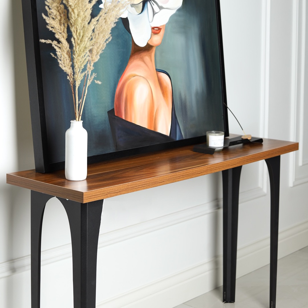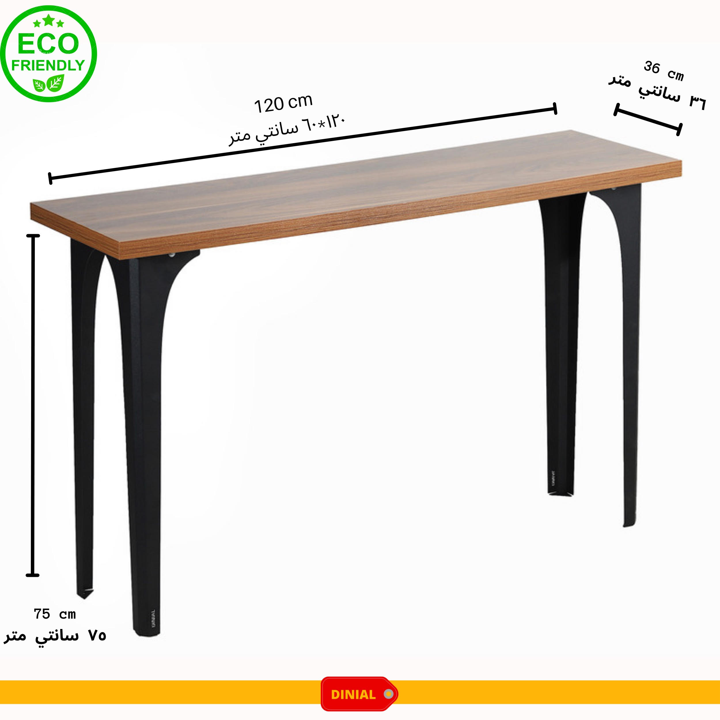 امروزه در بسياري از طراحي هاي داخلي تنها آيتمي كه يعي مي شود در همه سبك چيدمان ها حتما مورد استفاده قرار بگيرد ميز كنسول است. ميز کنسول دينيال با لبه های pvc شده و تولید شده از ام دي اف با مغز و روكش خارجي در ابعاد ١٢٠ در ٣٦ محصولي كاربردي در اين زمينه است . این محصول دارای پایه های فلزي است كه در عين سادگي و شيك طراحي منحصر به فردي دارند و بسيار مقاوم بوده و به دليل رنگ الكترو استاتيك به كار رفته بسيار با كيفيت هستند ارتفاع اين محصول ٧٥ سانت است و چوب به كار رفته دوبل شده روي صفحه محصول داراي ضخامت 32 mm هست